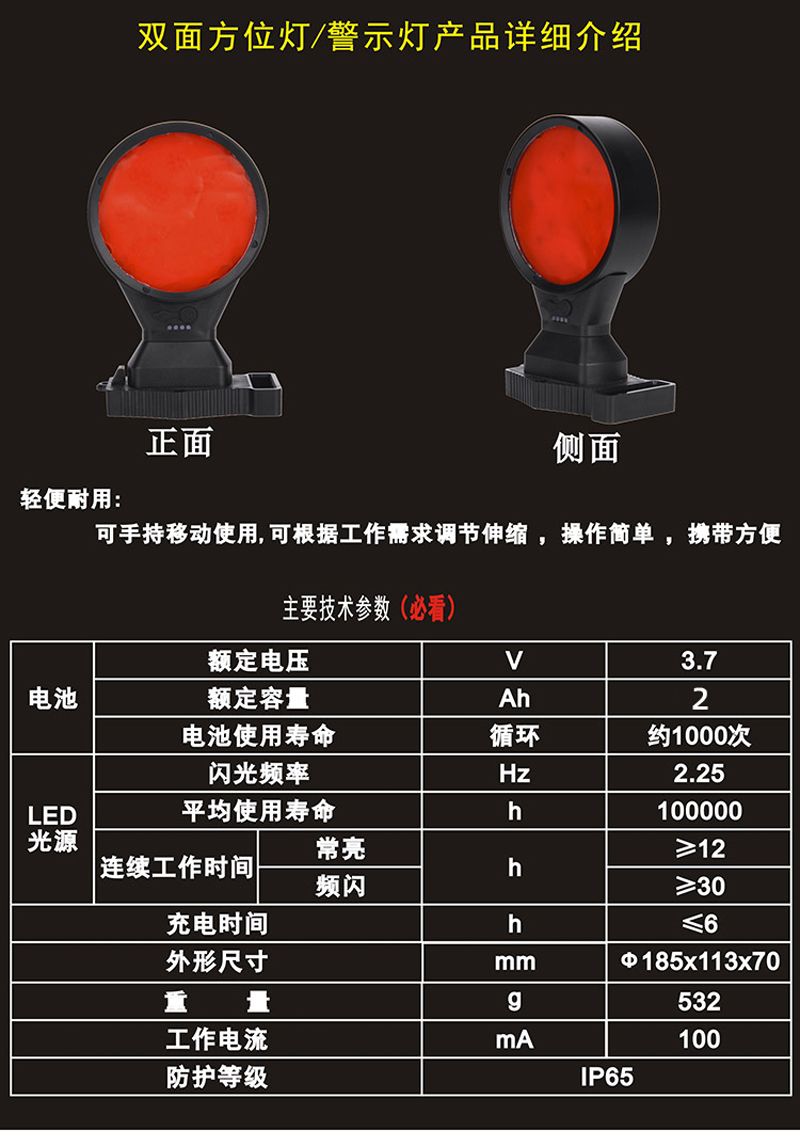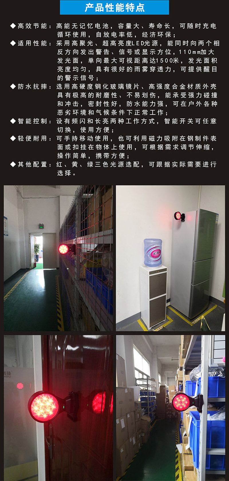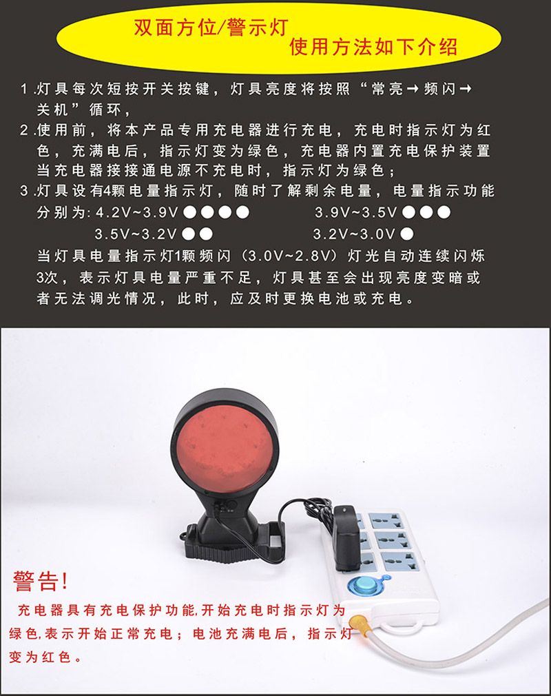 ◆适用性能:采用高聚光、超高亮度LED光源,能同时向两个相反方向发出警告、信号或显示方位,110mm加大发光面,单向*大可视距离达1500米,发光面积亮度均匀,具有很好的雨雾穿透力,可提供醒目的警示信号;