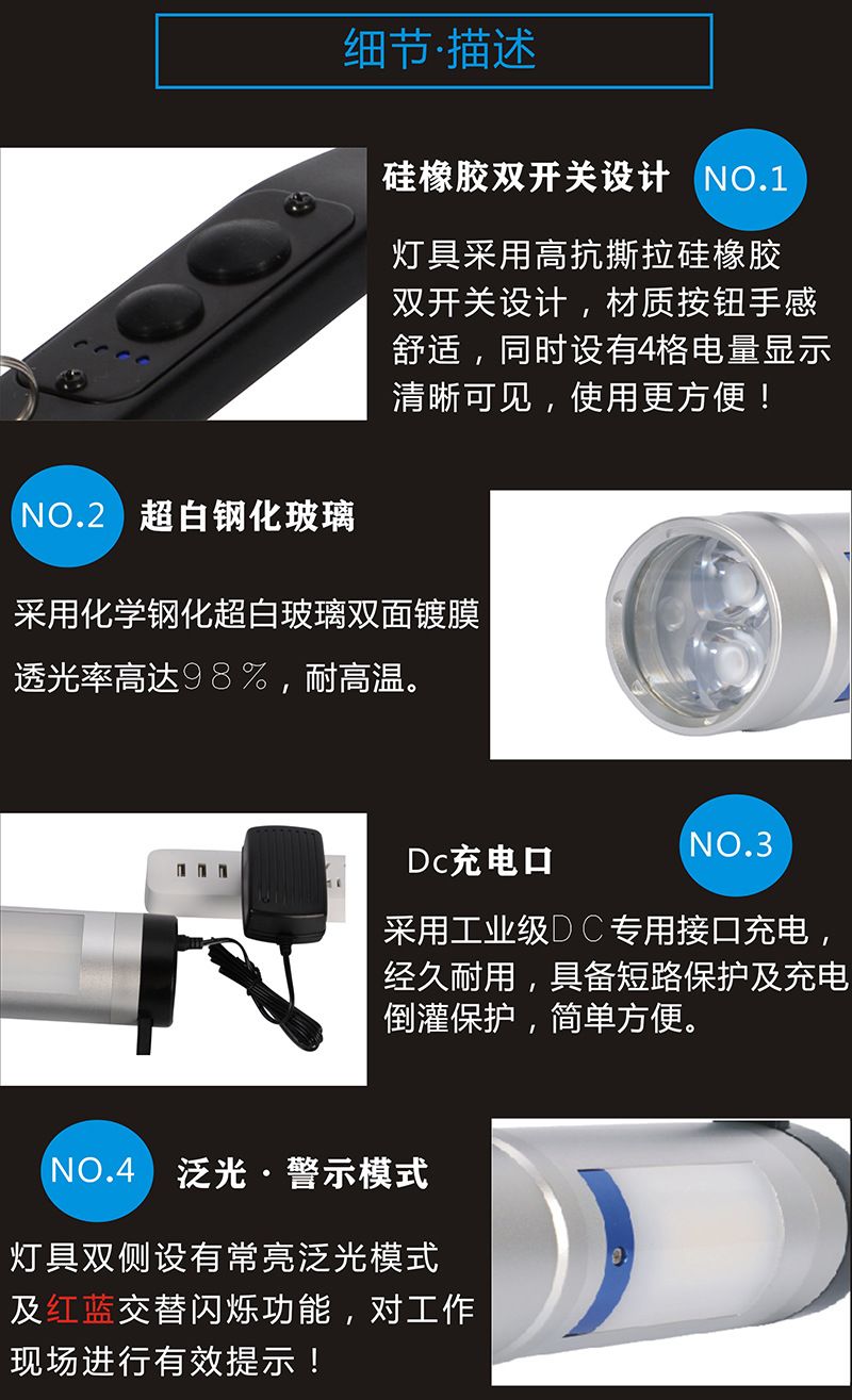 ◆适用于公安等其他行业夜间搜索强光照明或作业现场工作照明,且可有效的进行现场警示,提升携带人员及工作人员的现场的安全保障。