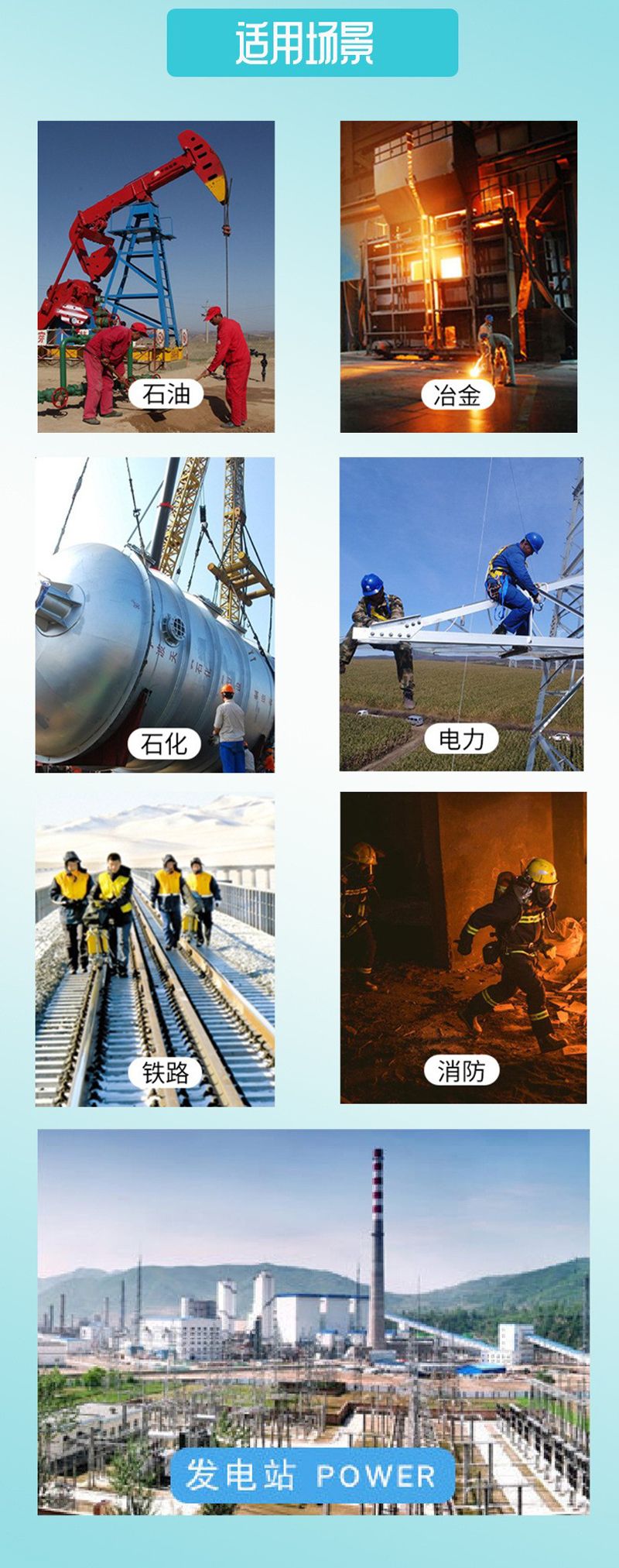 ◆适用于冶金、厂电、网电等行业的巡查、设备检修等。